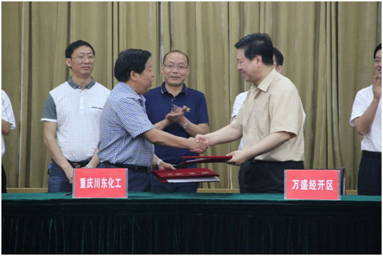 6月11日下午,公司董事长高光凡、党委书记李国胜、总经理李桂君率集团领导班子冒雨赶赴万盛,与万盛经开区管理委会签定精细化工项目投资协议。此举标志着渝川东进驻万盛经开区煤电化园区取得实质性进展。